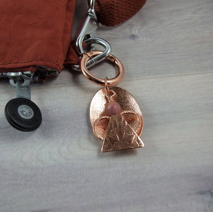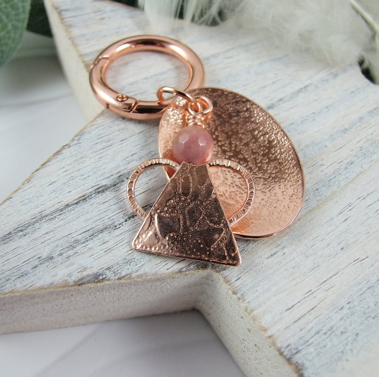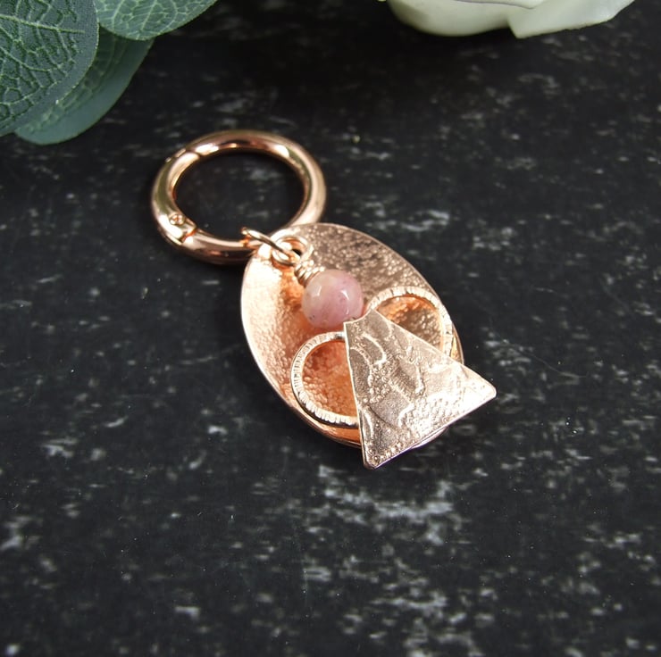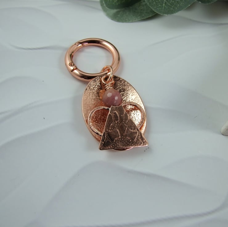 Guardian Angel Bag Charm Key Ring with Rhodonite Gemstone. 7th Wedding Anniversary Gift. Could also be used as a hanging decoration or a Christmas Tree decoration.
