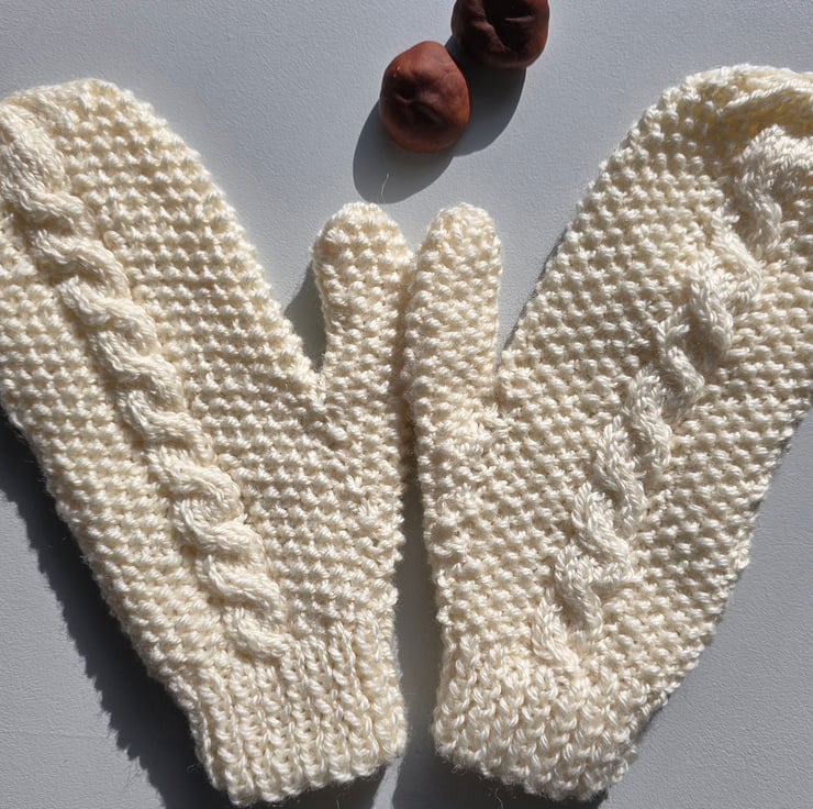 Aran mittens in 100% British Blue Faced Leicester wool. Size Med