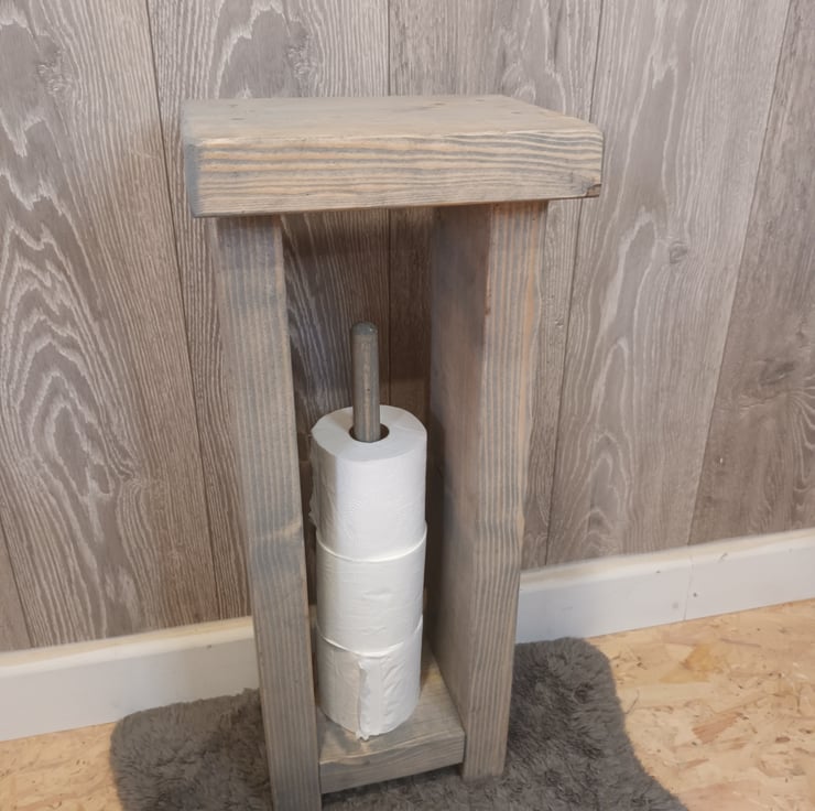 Chunky soiled timber free standing toilet paper holder and table