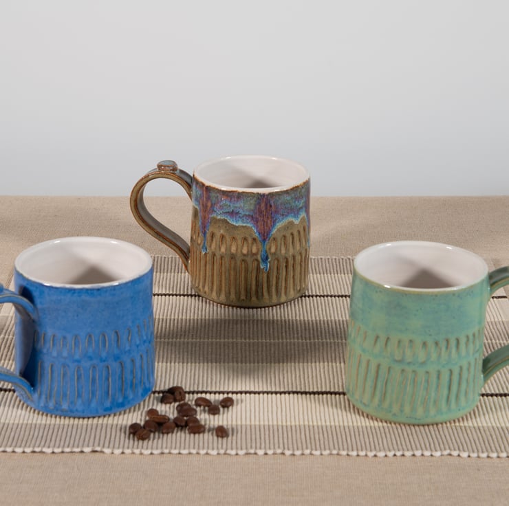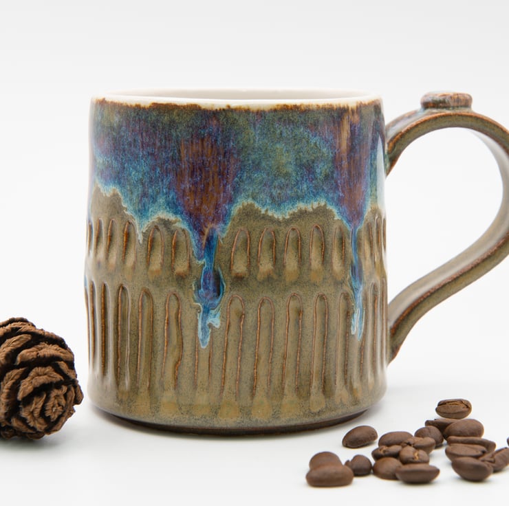 Hand-thrown and carved mug with thumb rest - 10cm x 9cm