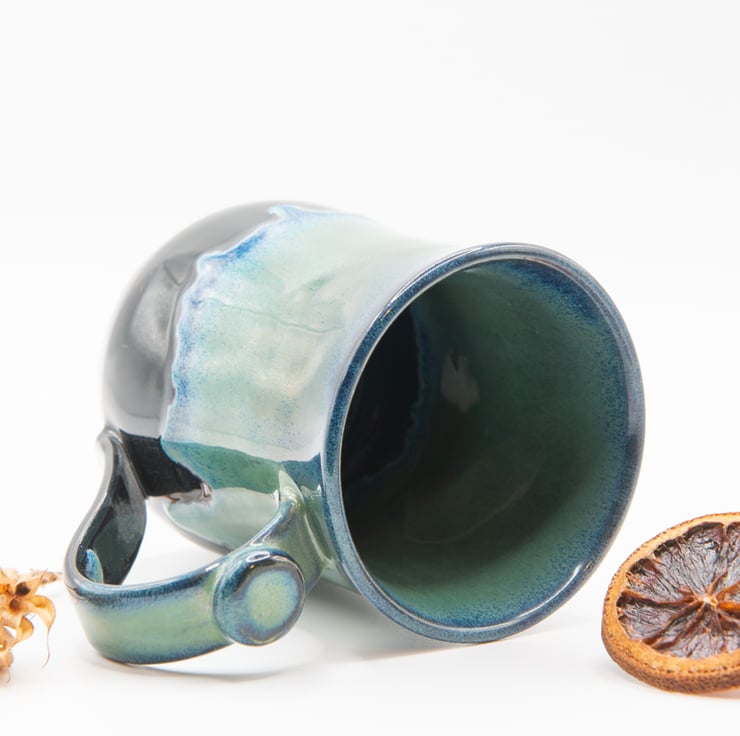 Hand-thrown and carved mug with thumb rest - 10-10.5cm x 8cm