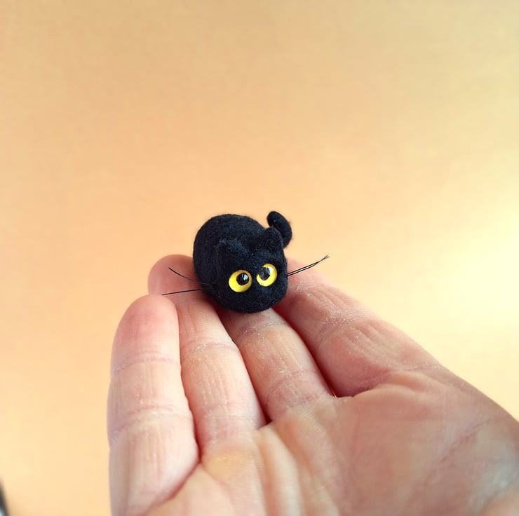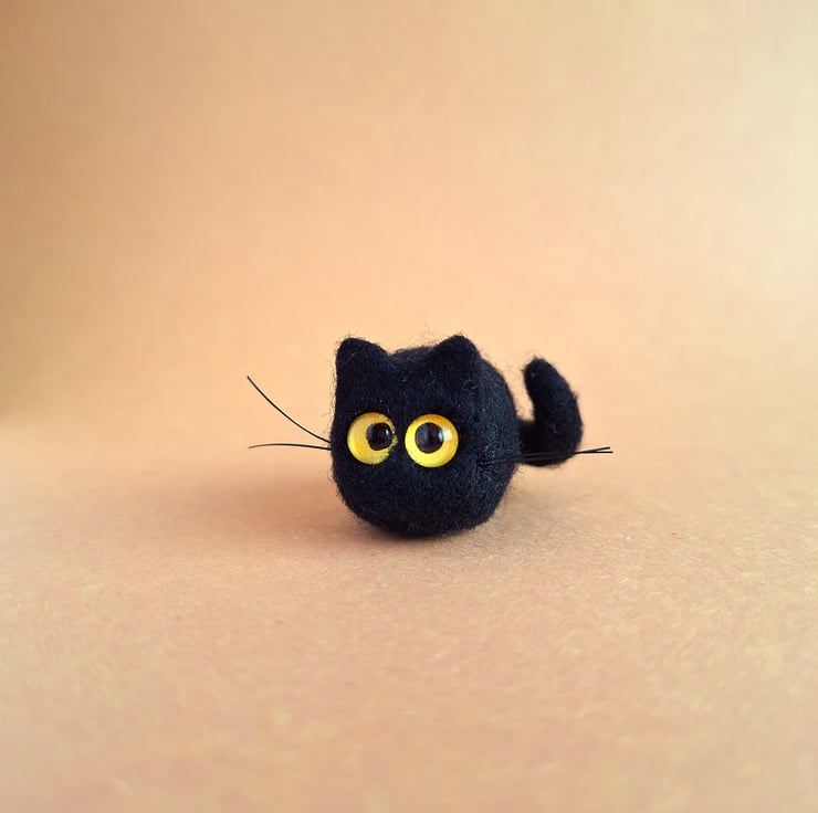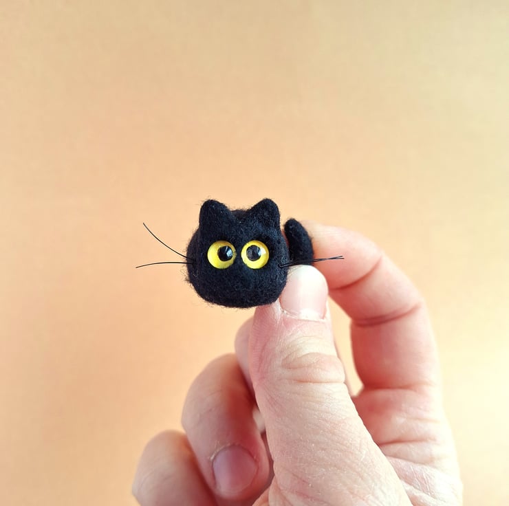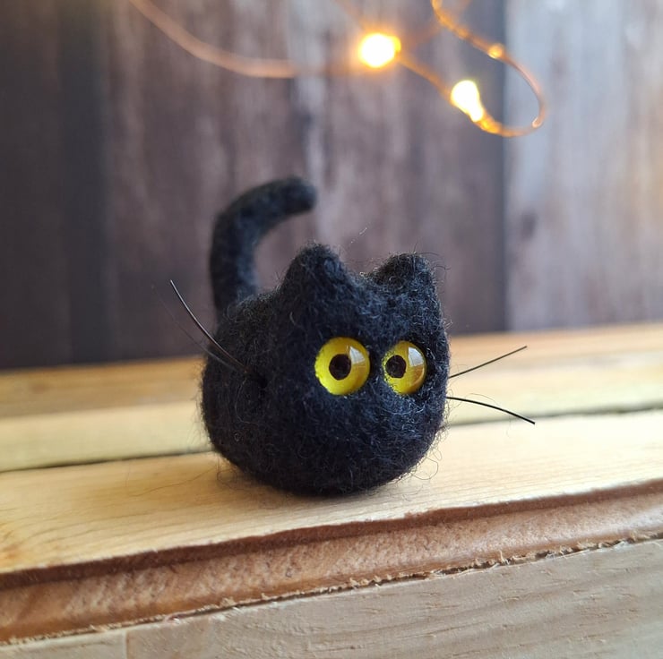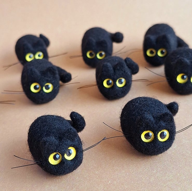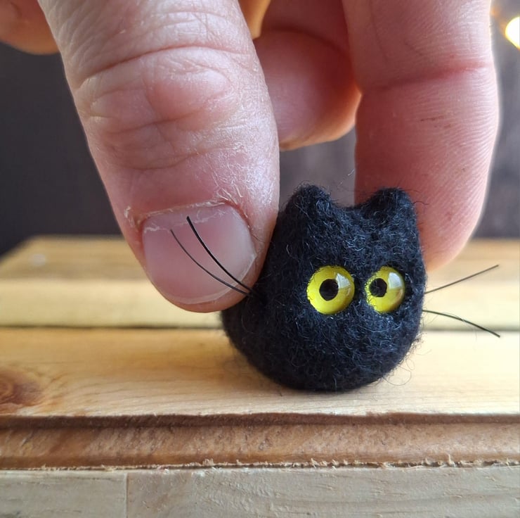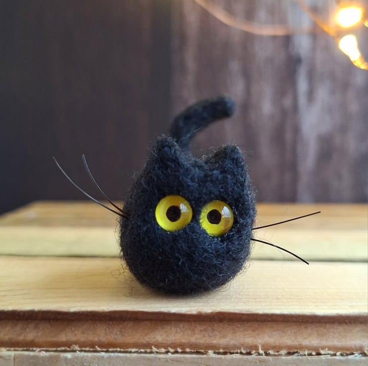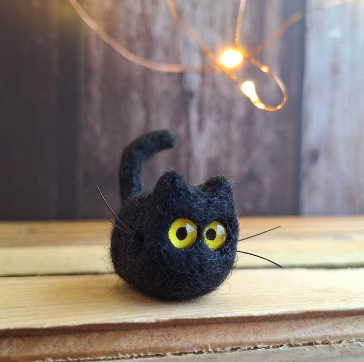 These dinky cats are handmade from felted wool, with hand coloured glass eyes, a poseable tail and real horsehair whiskers.