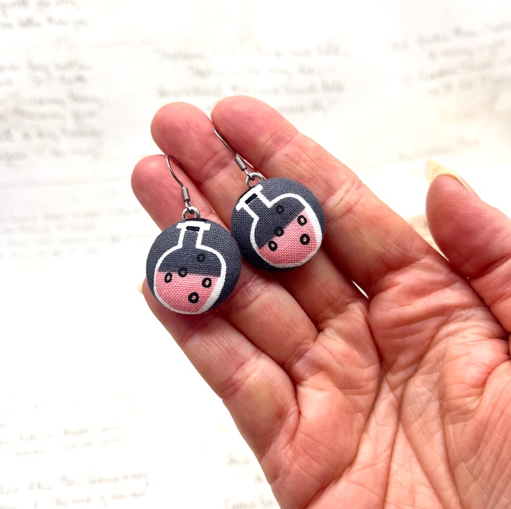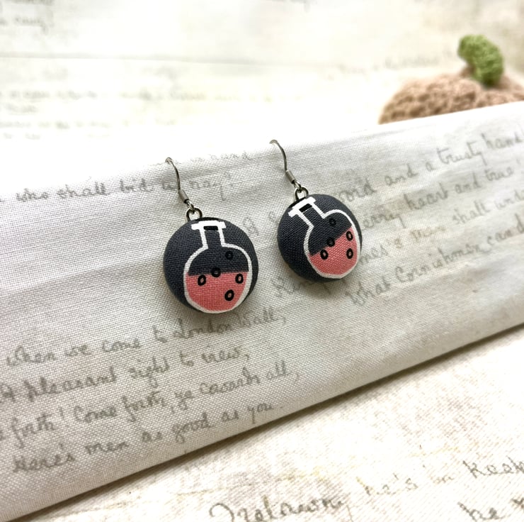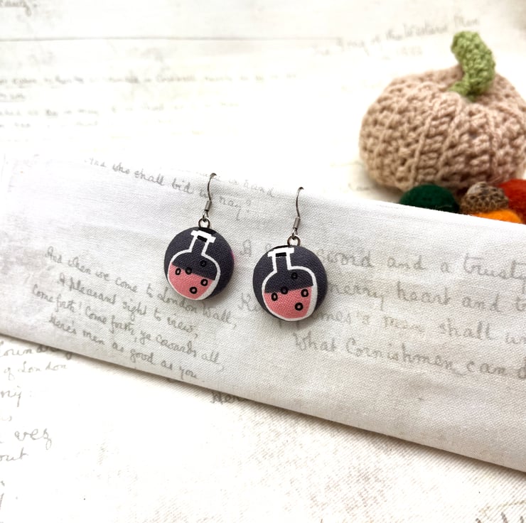 If you’re a fan of science, potions and magic then these pink potion bottle earrings are just for you!