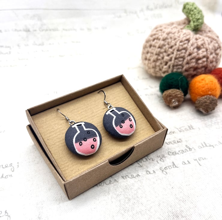 They come in an eco-friendly kraft card square earring box with logo – perfect for gifting to that fan of Science, witches, magic and of course Halloween. Great if you’re looking for an unusual gift, or a treat for yourself!