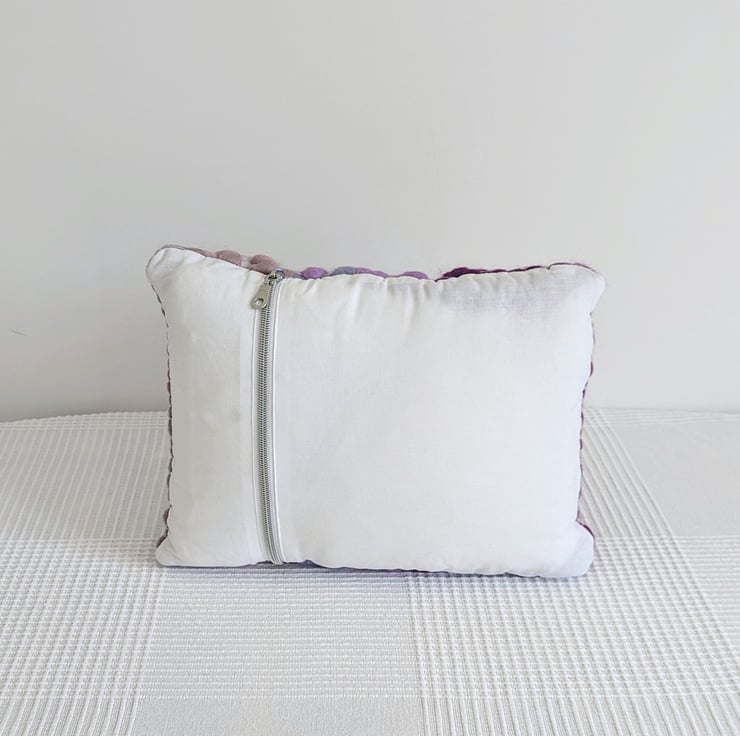 Care - Due to the delicate nature of the un-spun wool yarn the cushion cover should be wiped clean only and can also be lint rolled to remove any extra fluff. The piece is finished with a cotton backing, silver zip and polyester insert which can be removed if it needs to be cleaned.