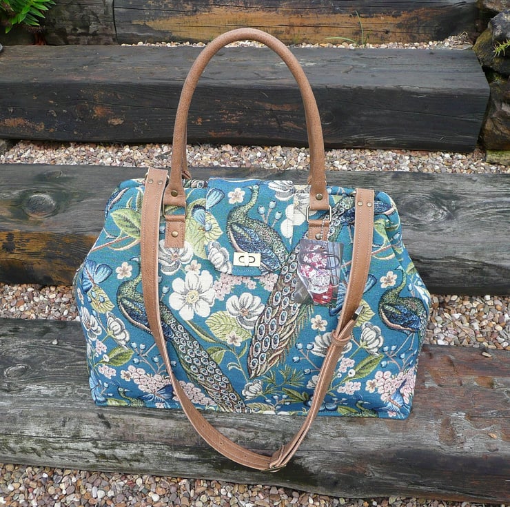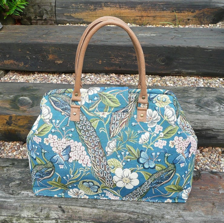 Peacock tapestry weekender bag Mary Poppins style carpet bag travel bag hand luggage