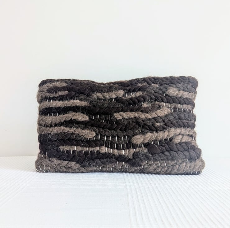Each cushion cover is handwoven on a traditional weaving frame using a combination of cotton and wool yarns, therefore making each one unique. I have used un-spun wool in the warp in order to create the chunky texture which makes this a bold statement piece which will brighten any room!