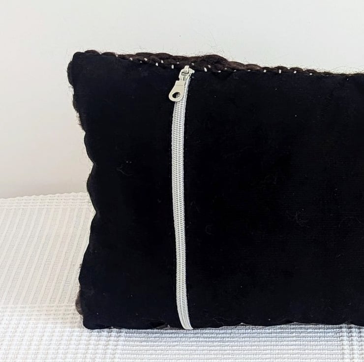 Care - Due to the delicate nature of the un-spun wool yarn the cushion cover should be wiped clean only and can also be lint rolled to remove any extra fluff. The piece is finished with a corduroy backing and polyester insert which can be removed if it needs to be cleaned.