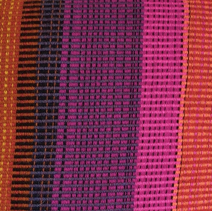 This unique hand woven cushion will add a touch of warm summer colour and texture to your home. Designed and made using 100% sustainable woollen yarns, in deep oranges, golden yellows and pinks, it is the ideal choice for anyone who loves to play with colour and pattern.