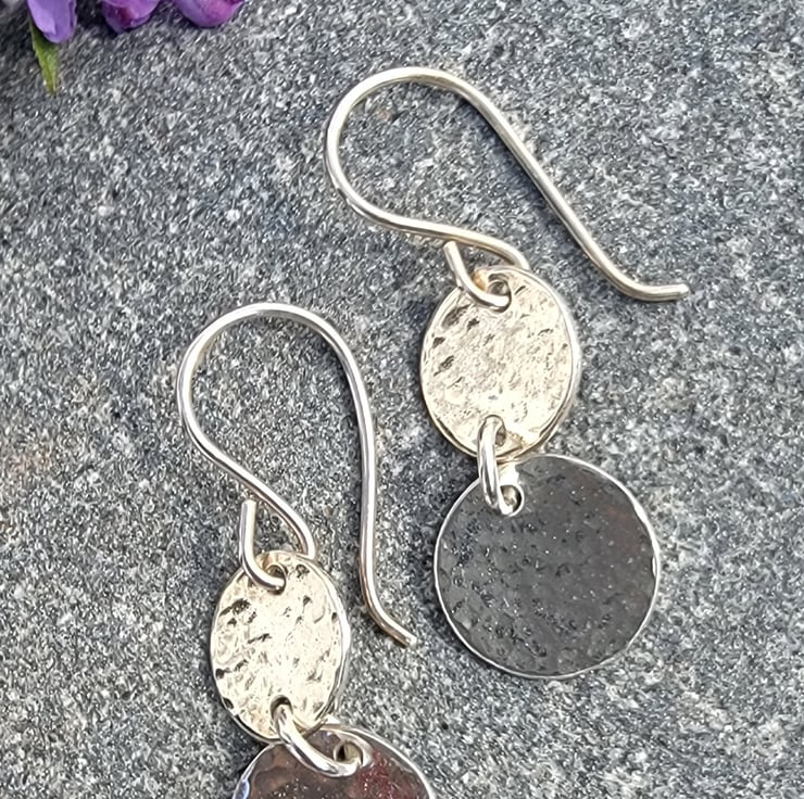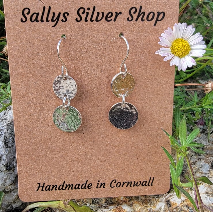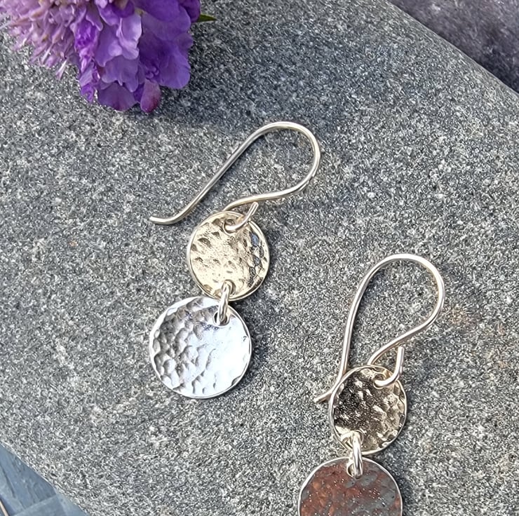 These earrings are made with 0.7mm Sterling silver sheet. Hammered to make a lovely sparkle effect.