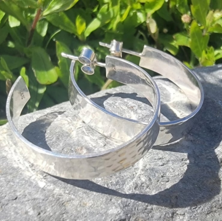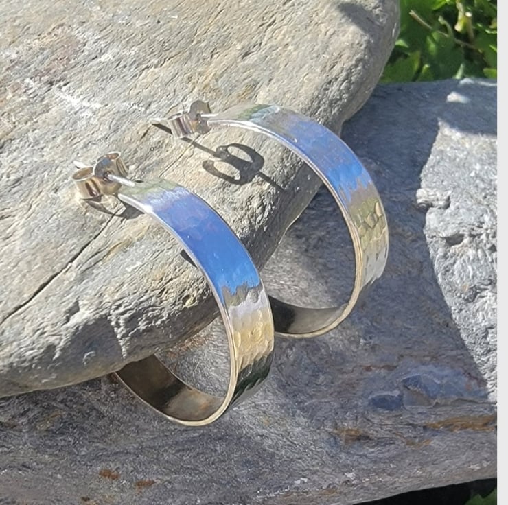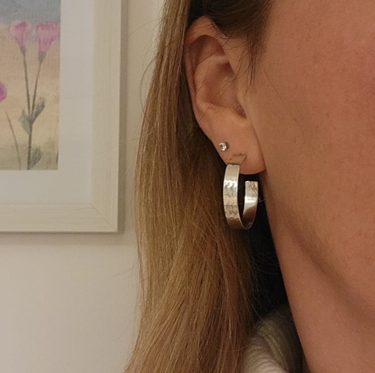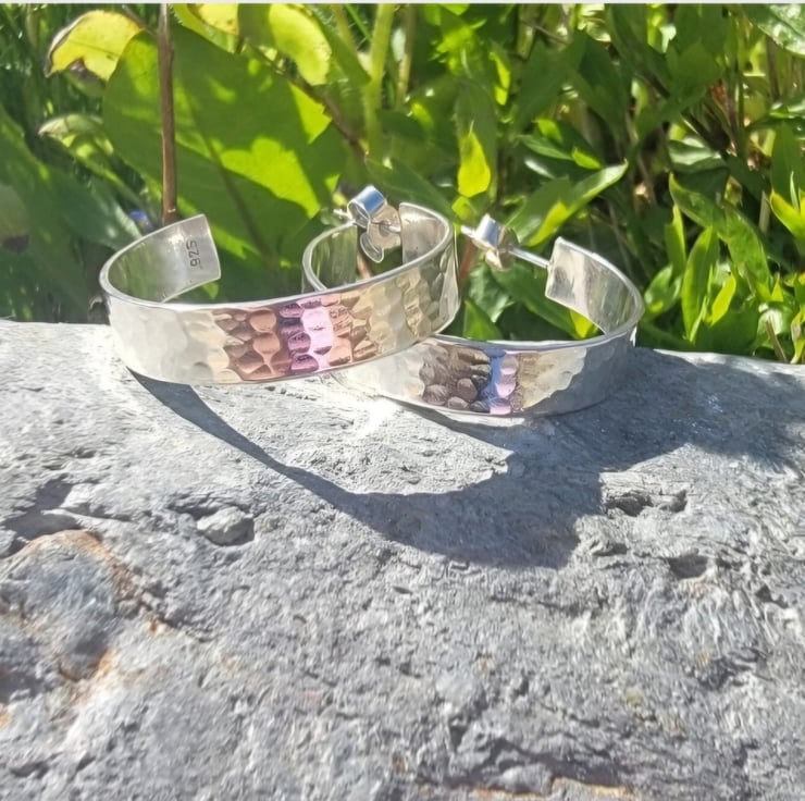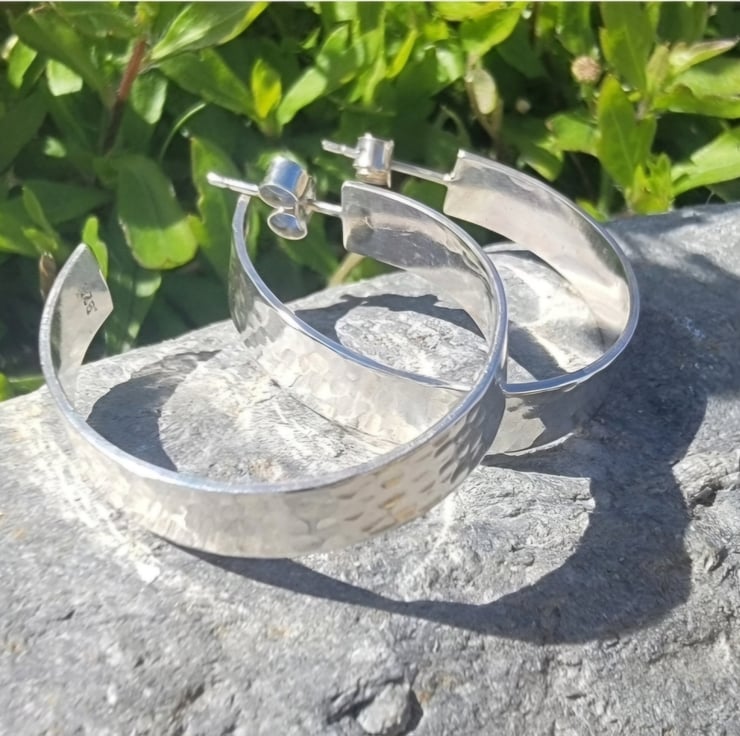 These earrings are made with 0.8mm Sterling silver sheet. Hammered to make a lovely sparkle effect.