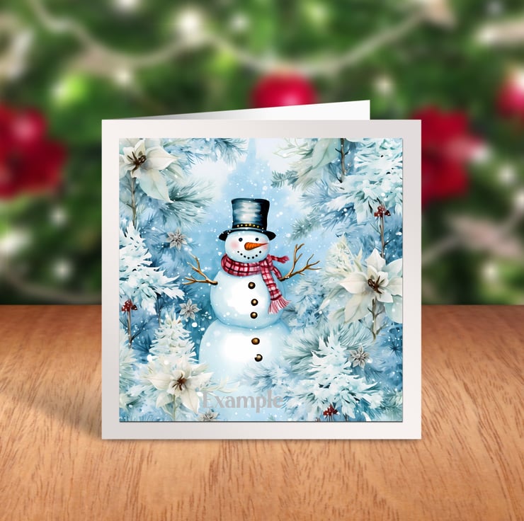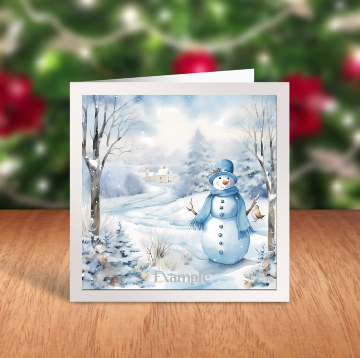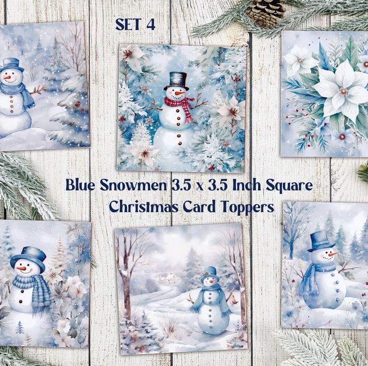 A set of six 3.5 inch square card toppers - Blue Snowmen Set 4 of 4 - Ideal for Christmas cards.