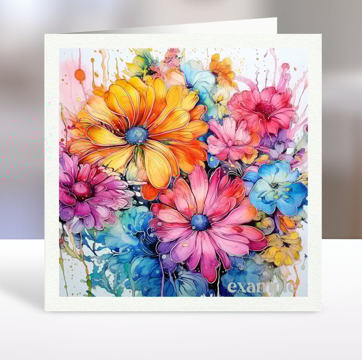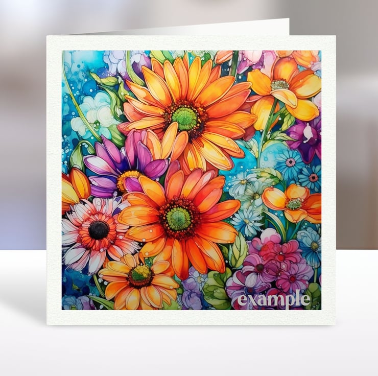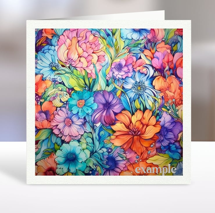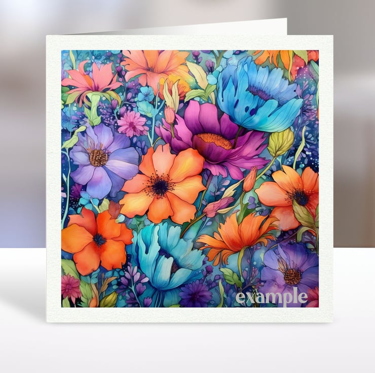 A set of six 3.5 inch square card toppers - Bright colourful flowers Set 1 of 2.
