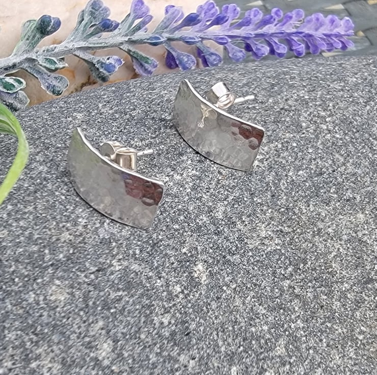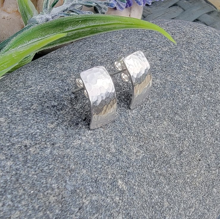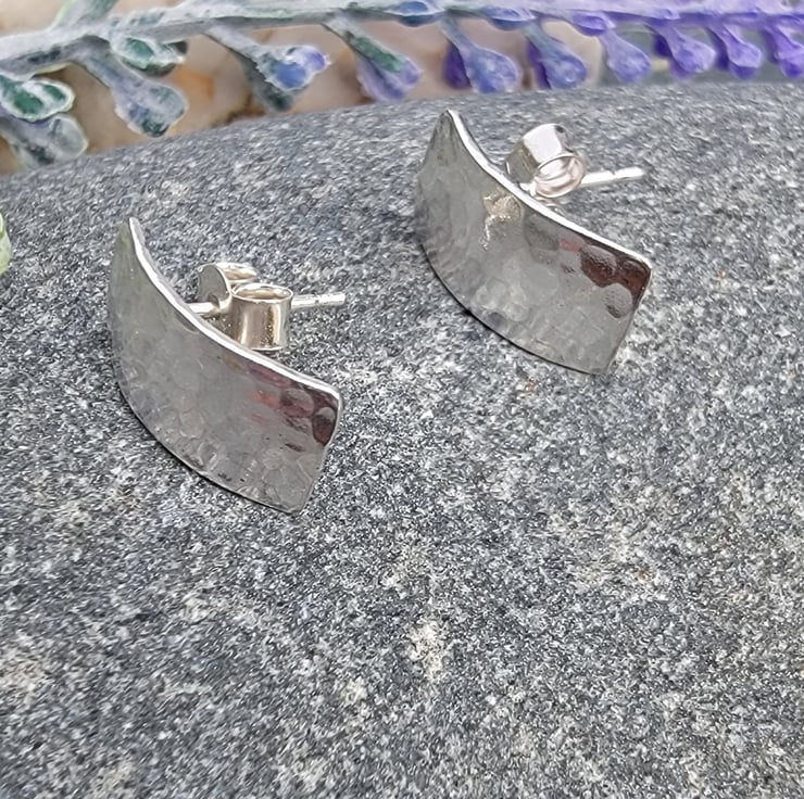 These earrings are made with 0.7mm Sterling silver sheet. Hammered to make a lovely sparkle effect.