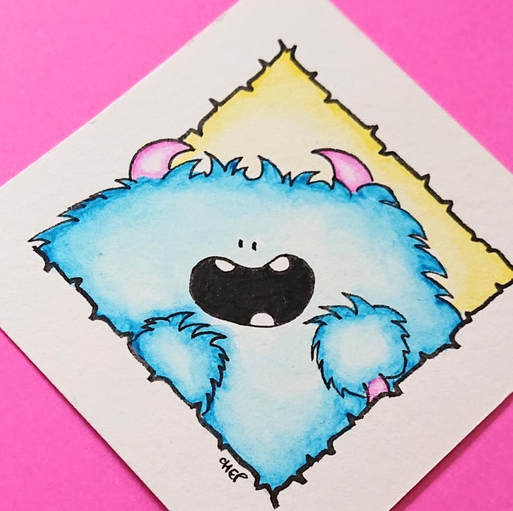 This is a very happy little guy! One of my original Chep characters aimed to make you smile. After illustrating this with ink, I used watercolours. The paper is high-quality watercolour paper. It is a mini piece measuring approximately: 2.5 x 2.5".