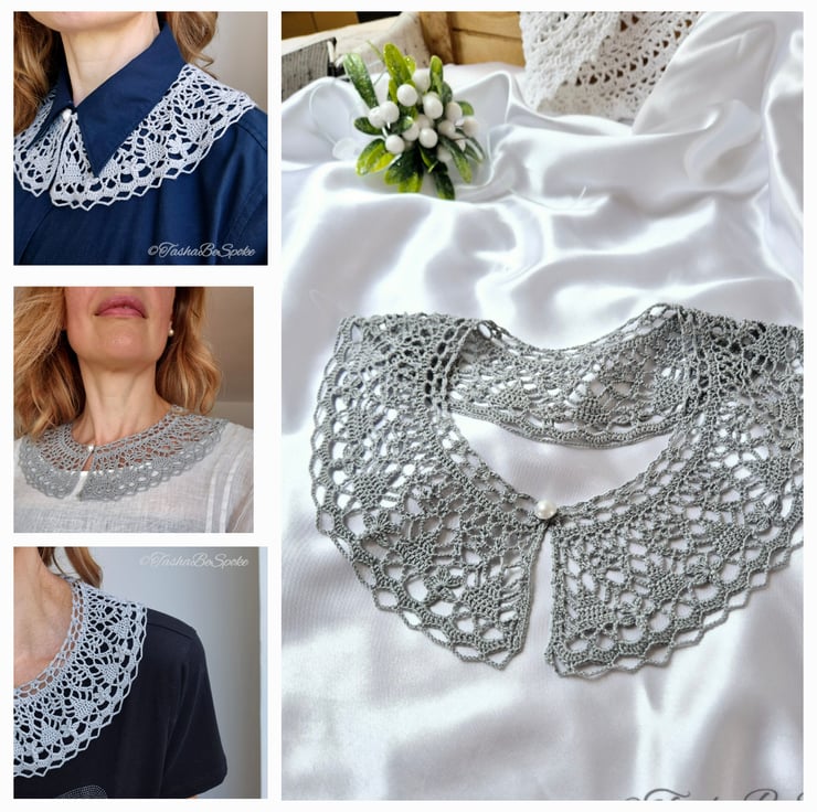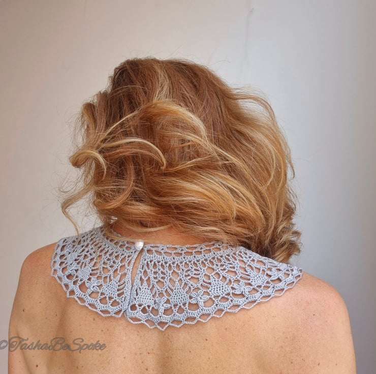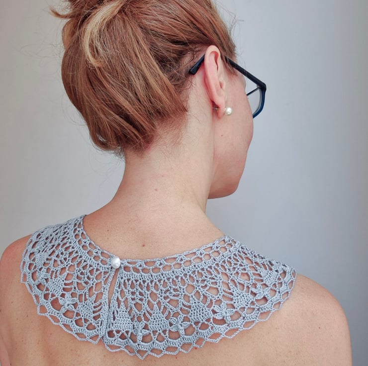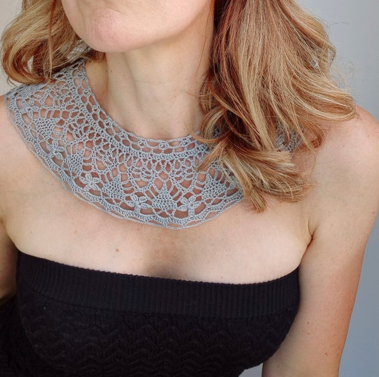 Crochet silver grey silk & cotton collar - unique textile necklace - women's detachable collar - gift for women.