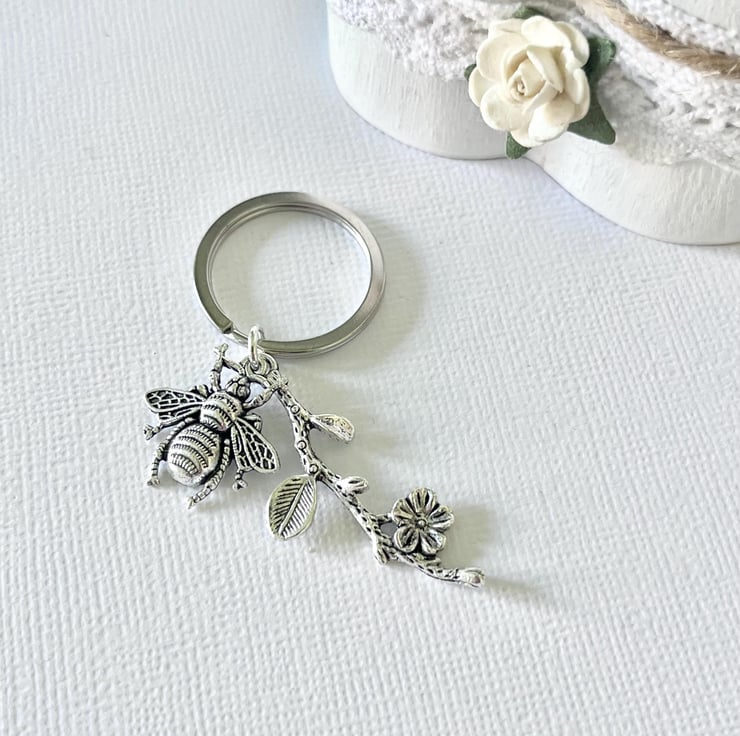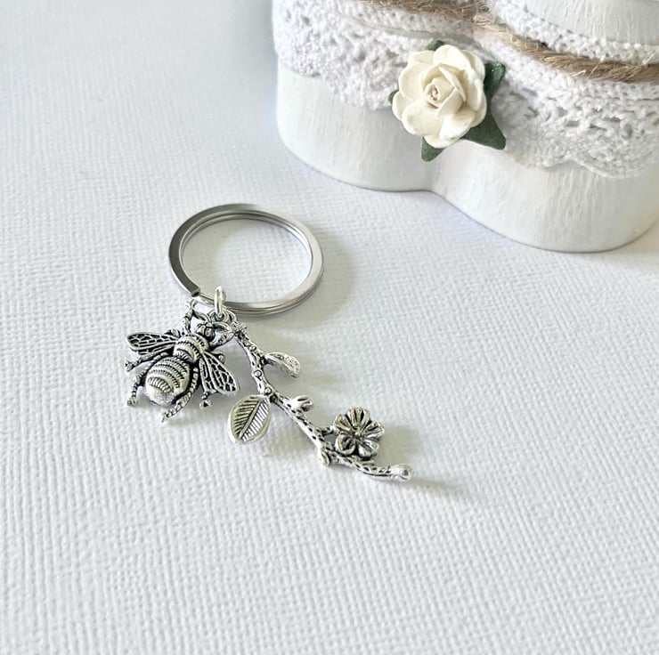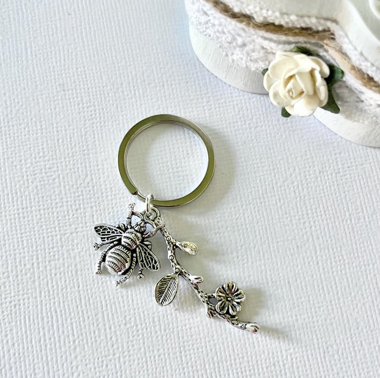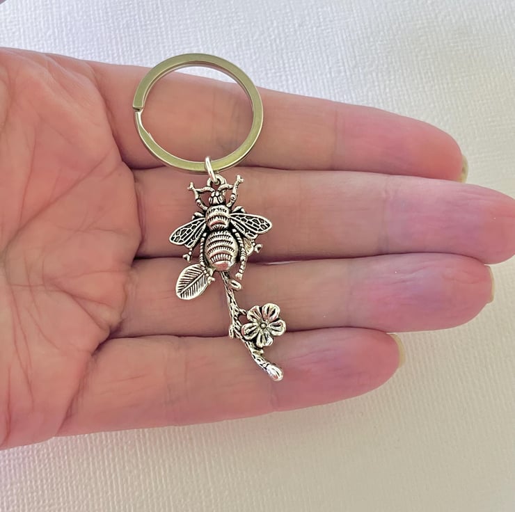 Add a touch of nature-inspired charm to your everyday life with this adorable bumble bee with flower keyring.