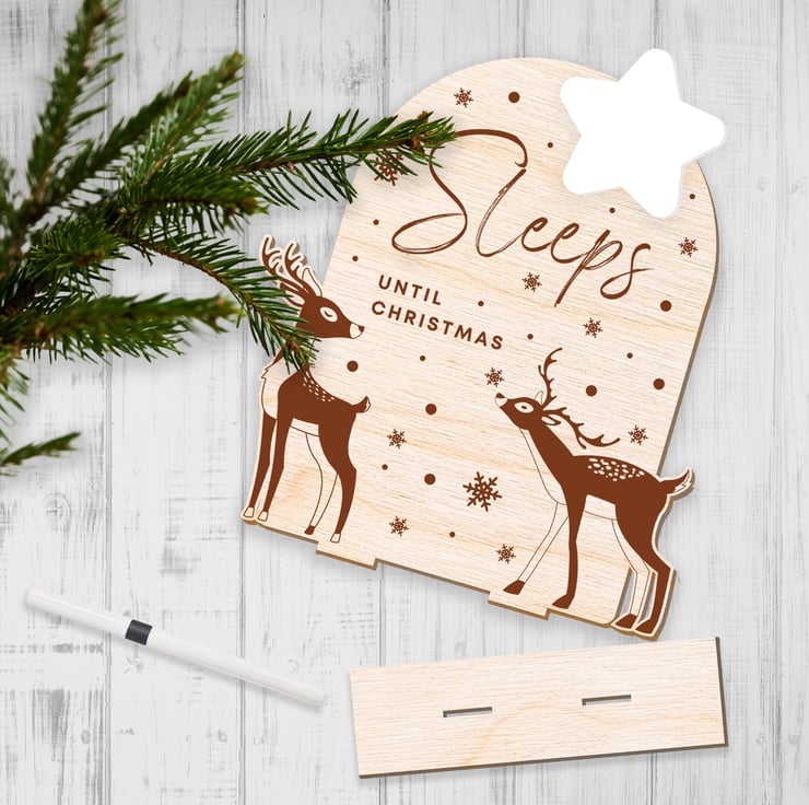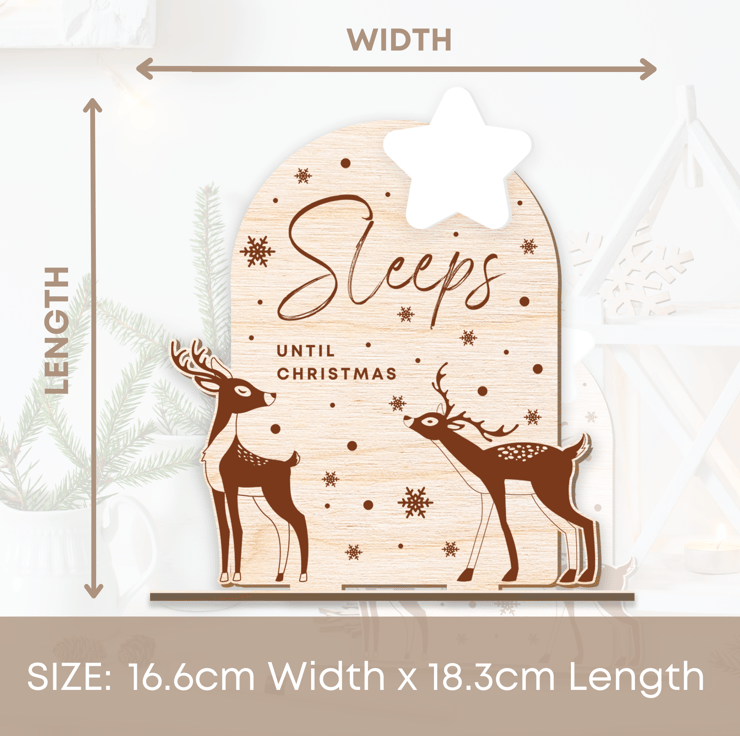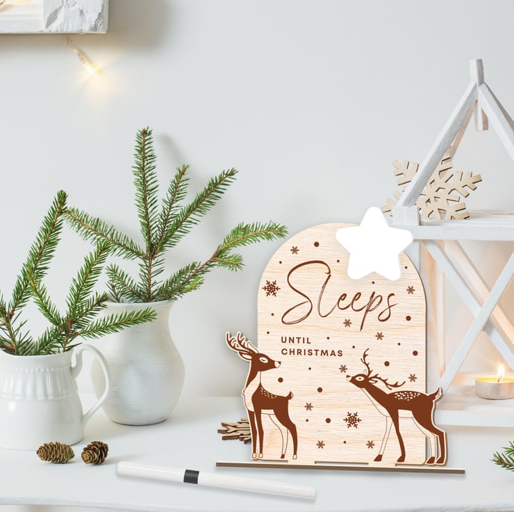 Add a touch of holiday magic to your home with our "Countdown Until Christmas" wooden plaque, featuring a cute reindeer design! This festive plaque includes a fun acrylic star, where you can write the days left until Christmas using the included dry erase marker. Perfect for building excitement as the holiday season approaches, and it's reusable every year!