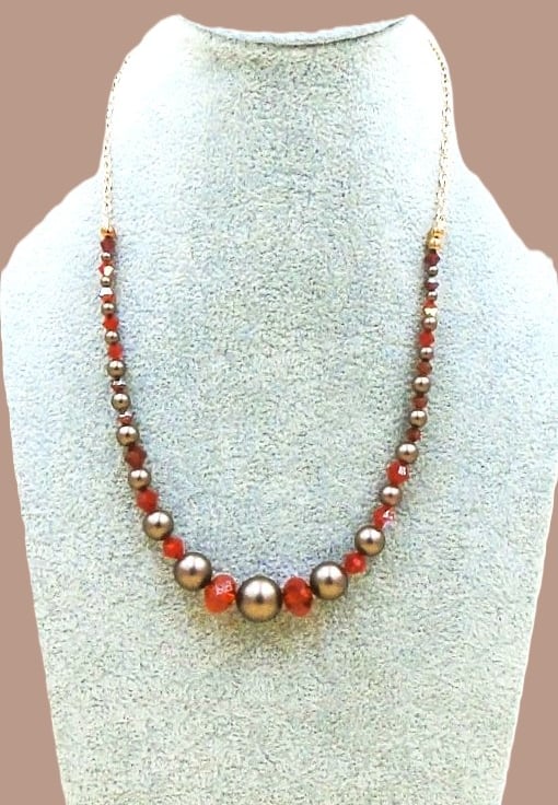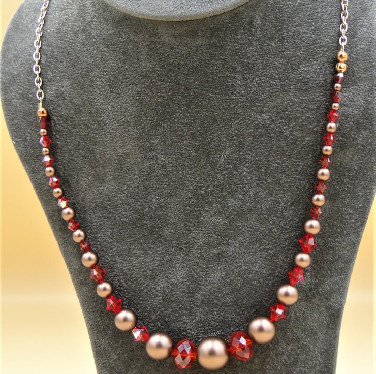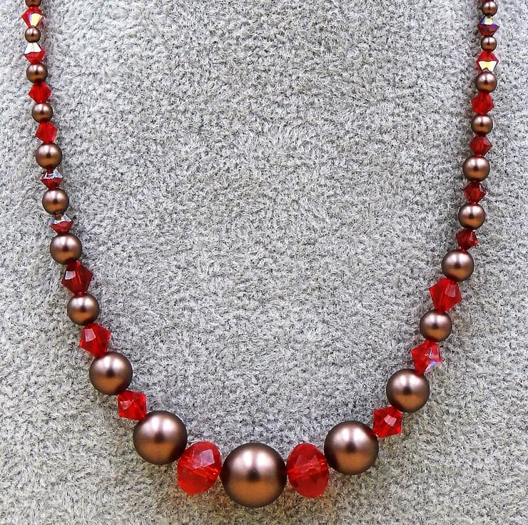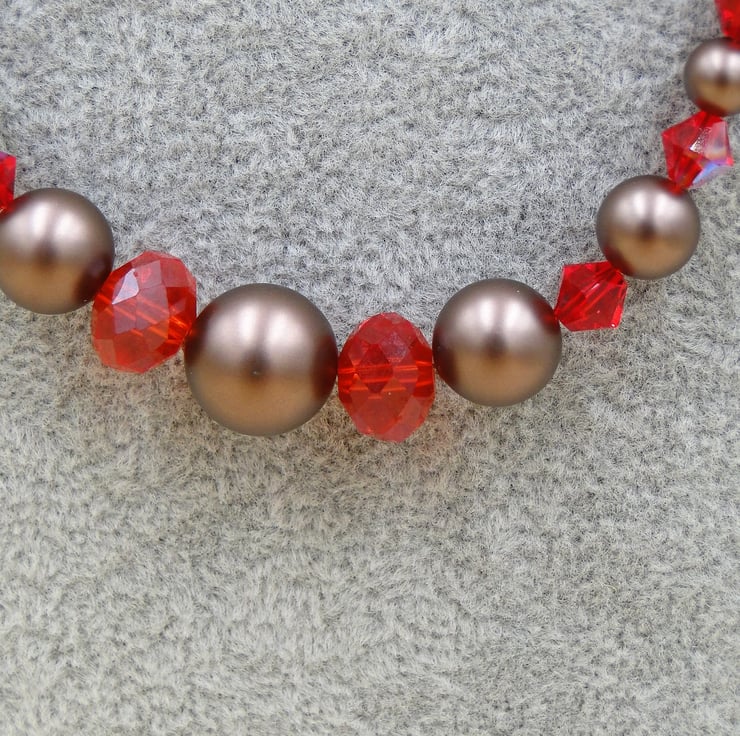 This is a pretty colour combination with the lustre of the red-brown pearls and the sparkling crystals.