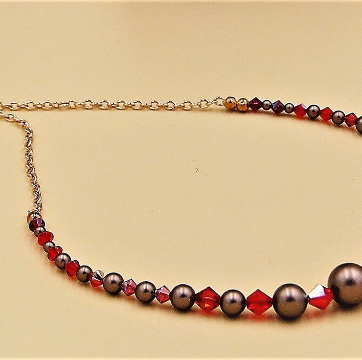 The pearls are graduated in size and have alternate sparkling red crystals also graduated. The colour combination was a special annual edition from Swarovski One of a kind