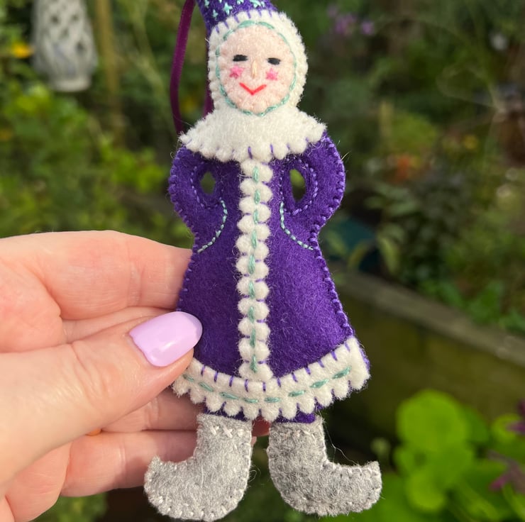 All of my makes are eco friendly and made to last from 100% wool felt and stuffed with washed wool fleece sourced from Yorkshire. I use DMC cotton thread to embroider folk patterns and stitches creating totally unique heirloom treasures.