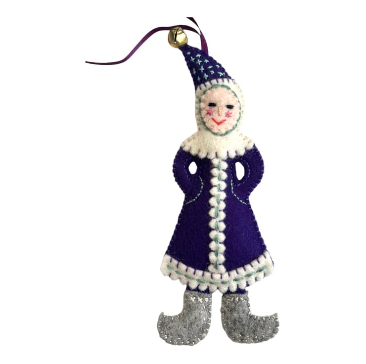This festive felt elf decoration is made from 100% wool felt and stuffed with wool fleece. I have embroidered him using DMC cotton threads. He would make a great stocking filler or a gift in the Christmas Eve box .
