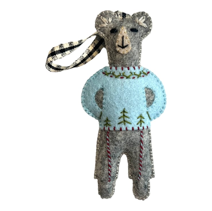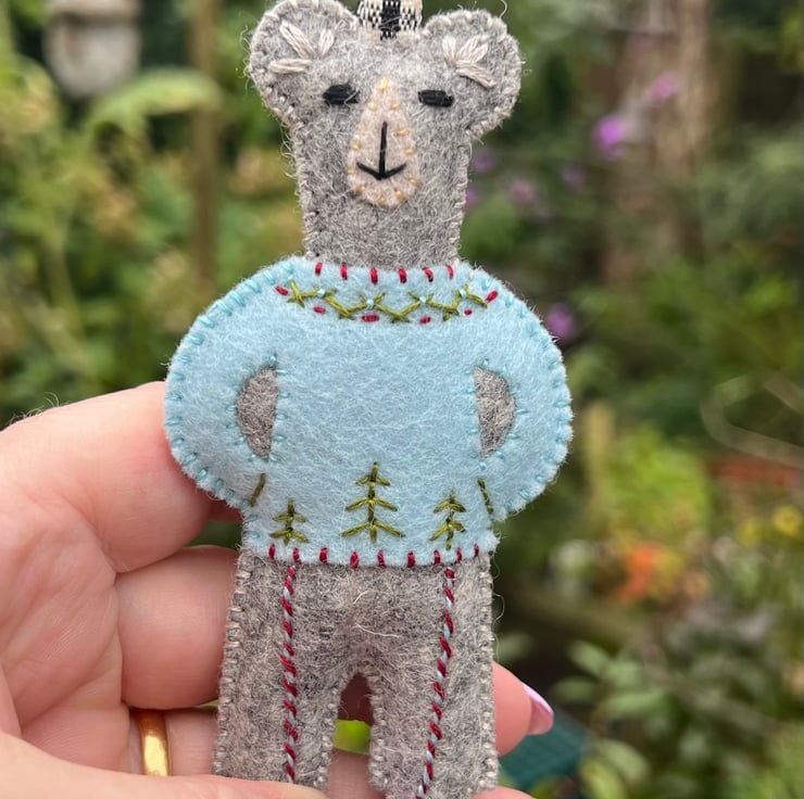 This bear in a Fair Isle Christmas jumper has been designed and made by me in The Egg. As with all of my makes , it’s made from 100% wool felt and stuffed with washed wool fleece.