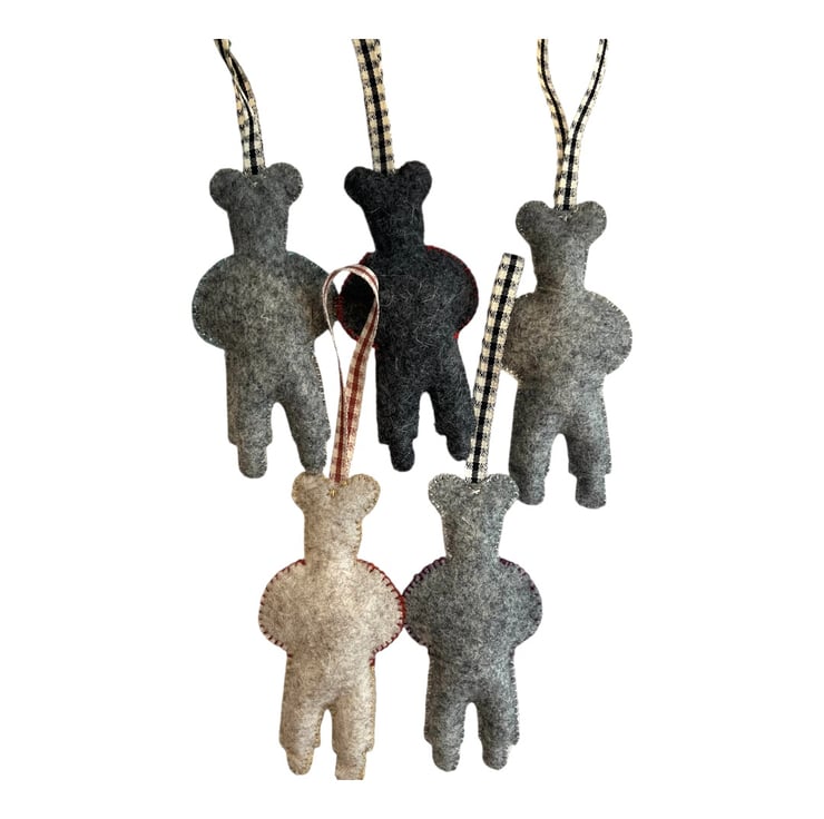 All of my makes are eco friendly and made to last from 100% wool felt and stuffed with washed wool fleece sourced from Yorkshire. I use DMC cotton thread to embroider folk patterns and stitches creating totally unique heirloom treasures.