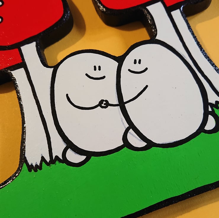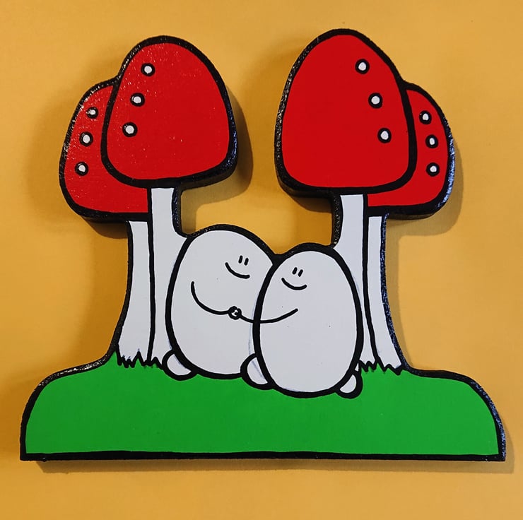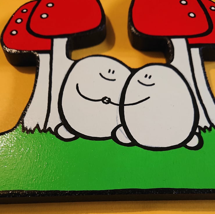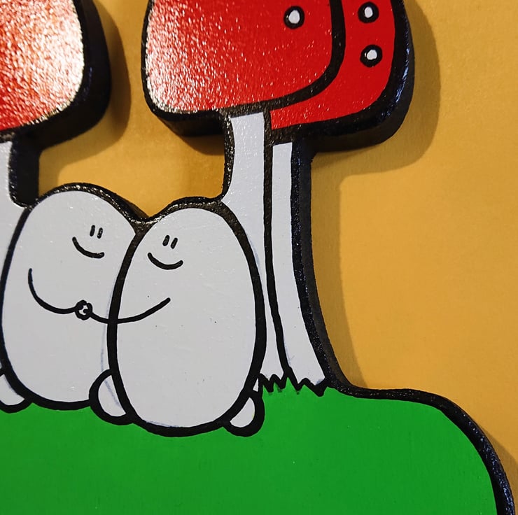 I love using my scroll-saw to create woodcuts and I love painting mushrooms, so wanted to combine the two!
