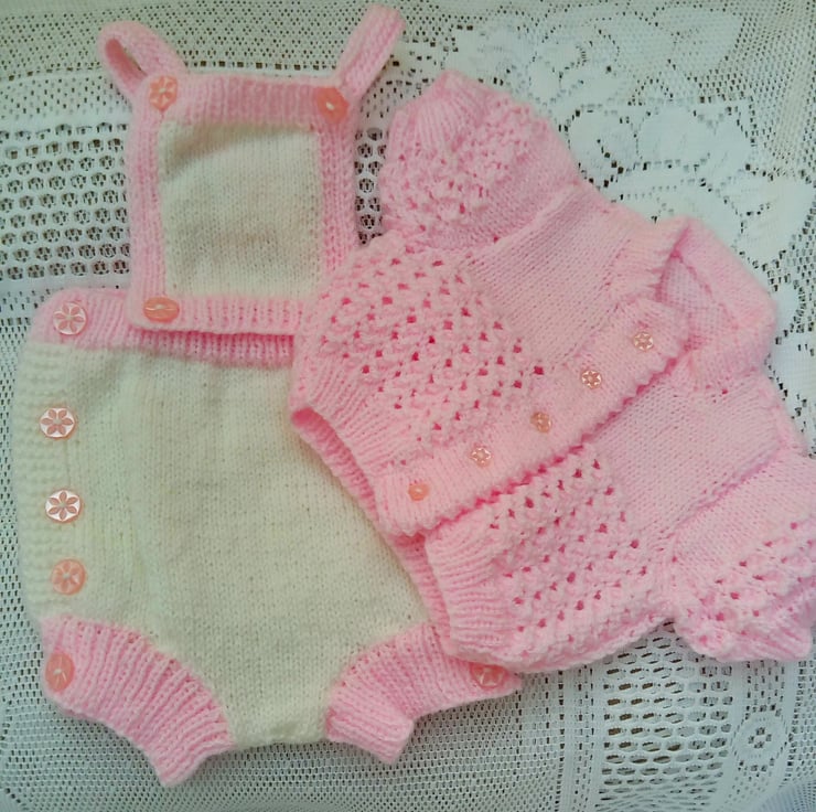 Baby's Romper and Cardigan Set, Hand Knitted Baby Outfit, Baby Shower Gift