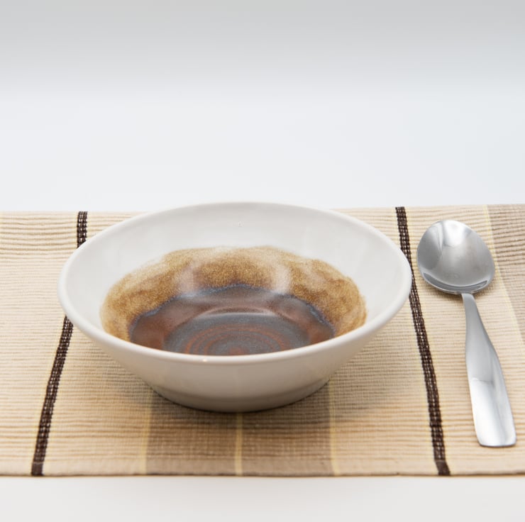 Finished all over with a white glaze accented with light brown and dark brown inside.