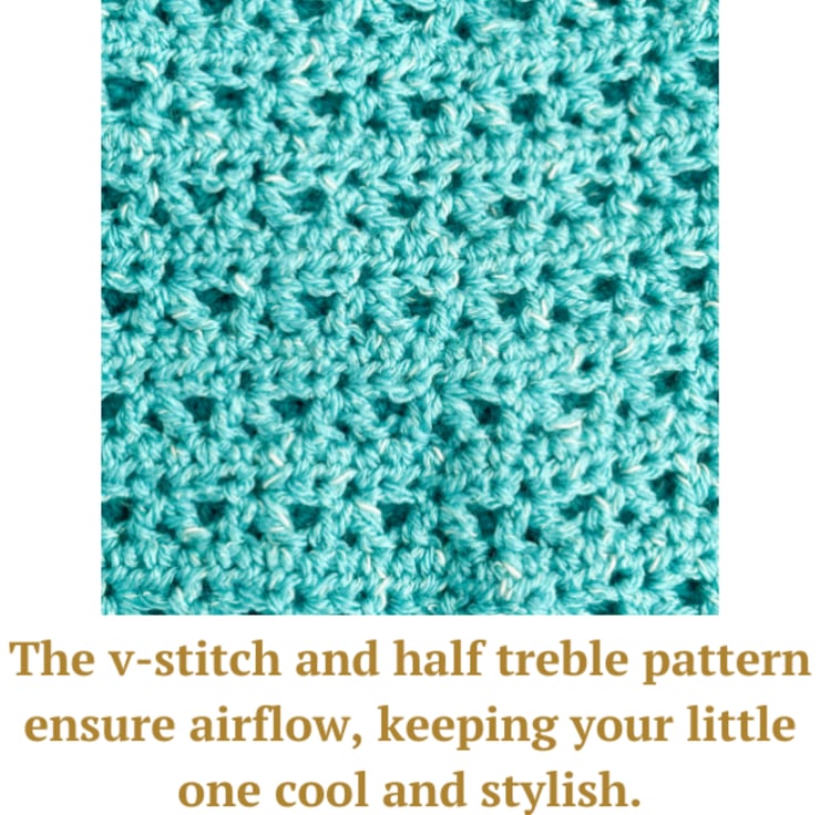 Crocheted from a soft blend of 78% acrylic and 22% cotton, this romper features an open v-stitch pattern that keeps it light and breathable, perfect for warmer weather.