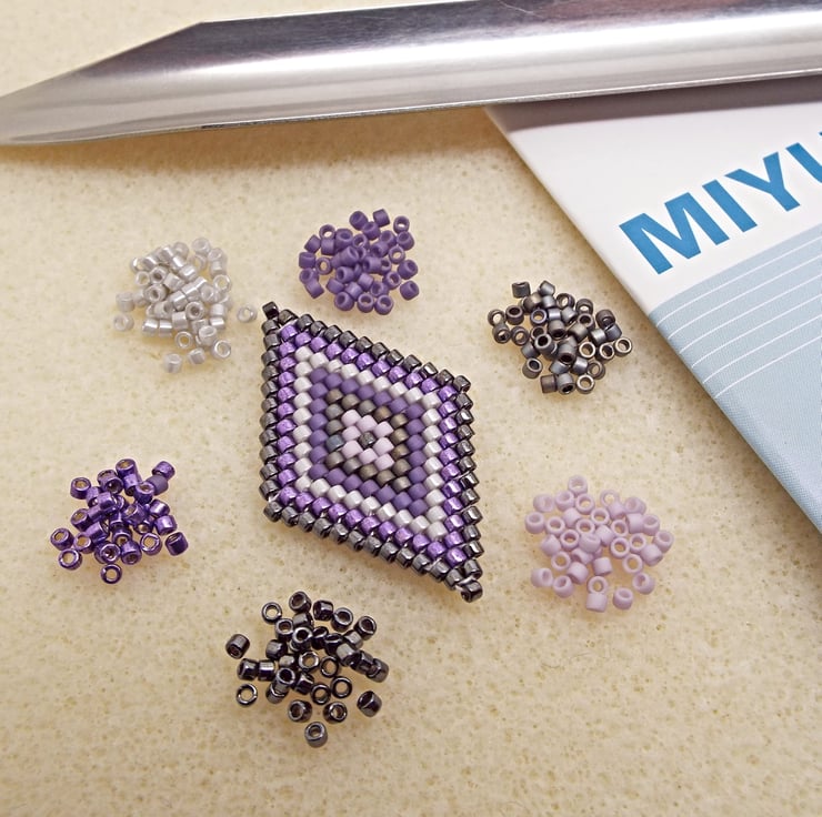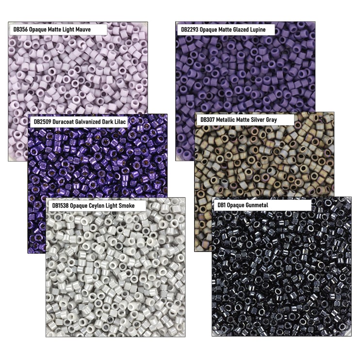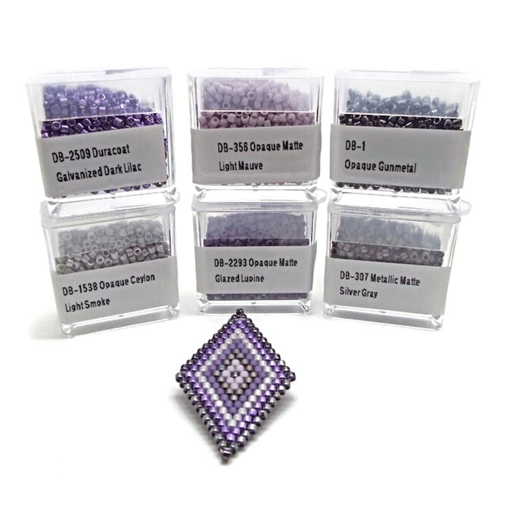 6x 5g Miyuki Delica Purple Rain Bead Mix. 30g of Genuine Miyuki Delica Beads in 6 Colours. See Beaded Diamond for design ideas using these colours....