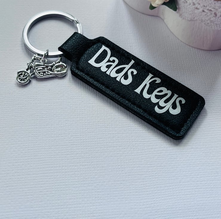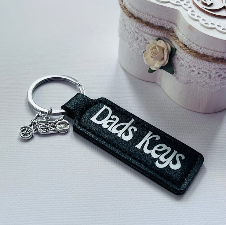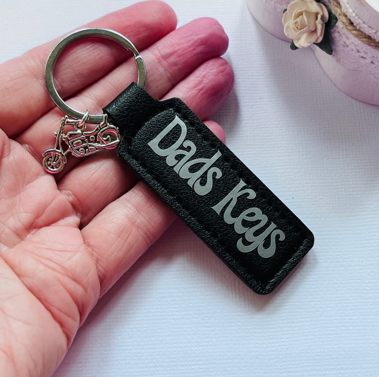 Introducing our Dads Keys faux leather keyring, the perfect accessory for every father! Crafted from high-quality faux leather, this stylish keyring combines durability with a sleek design. Lightweight and practical, it makes finding keys a breeze while adding a touch of personalization. Whether it's a gift for Father's Day, birthdays, or just to show appreciation, this keyring is a thoughtful choice. Embrace functionality and style with our unique Dads Keys keyring—perfect for any dad who loves to stay organized!