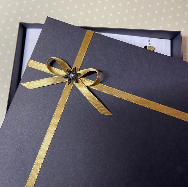 The card comes with the matching embellished gift box shown in the photographs.