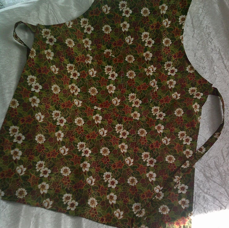 The design of the fabric used for this apron is of Helebores, poinsettias and foliage and is perfect for using during the festive season.