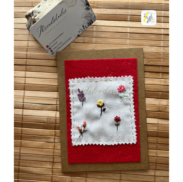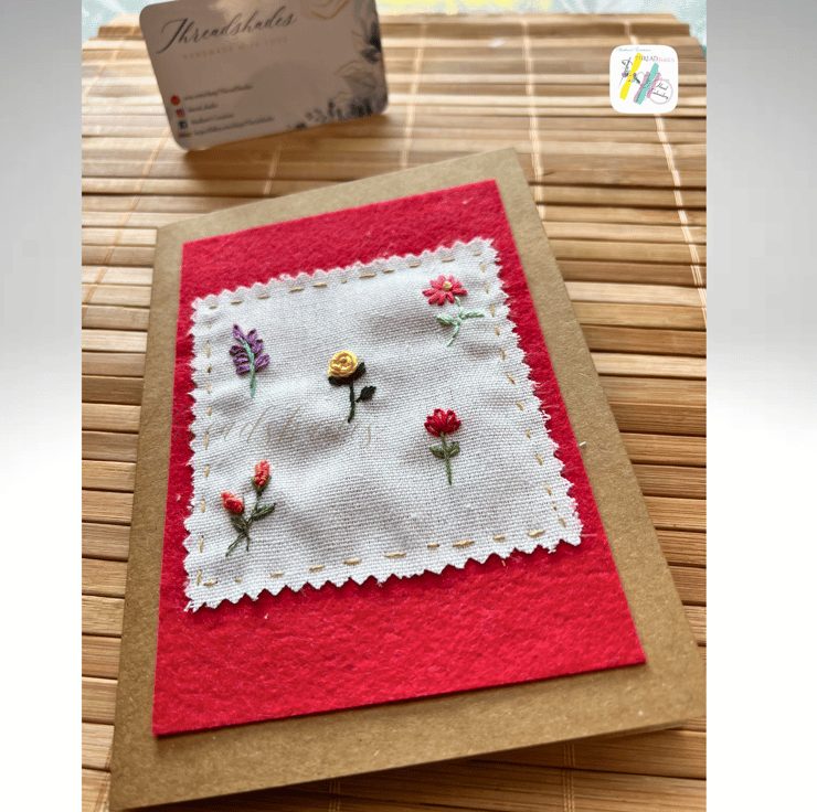 Product:- Handmade, Hand embroidered floral design greeting card