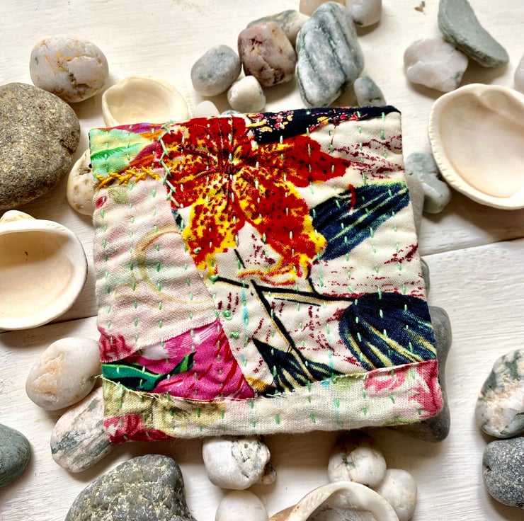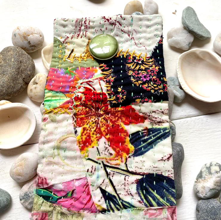 The fabric edges have been left raw and are part of the character of this type of Japanese inspired work.