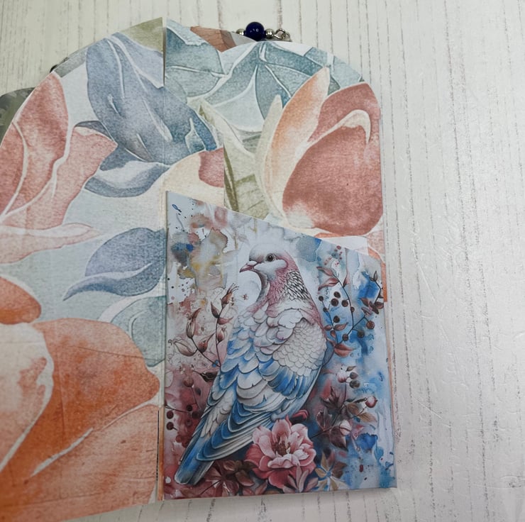 Beautiful floral faith flip folio with pockets, tags and cards. A beautiful glass bead decade small rosary with charm of Our Lady and decorative Crucifix.