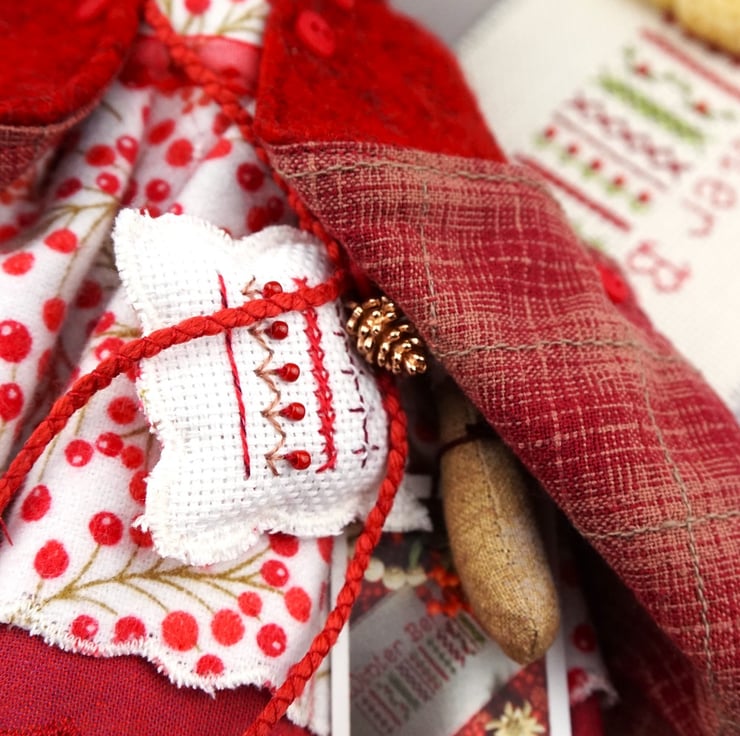 A little Christmas mouse in winter berry flannel fabric for a traditional seasonal look, I love the combination of the red and the ivory. This is the little mouse shown in Ideal Home xx
