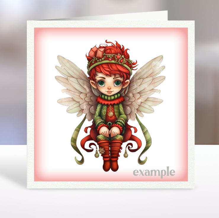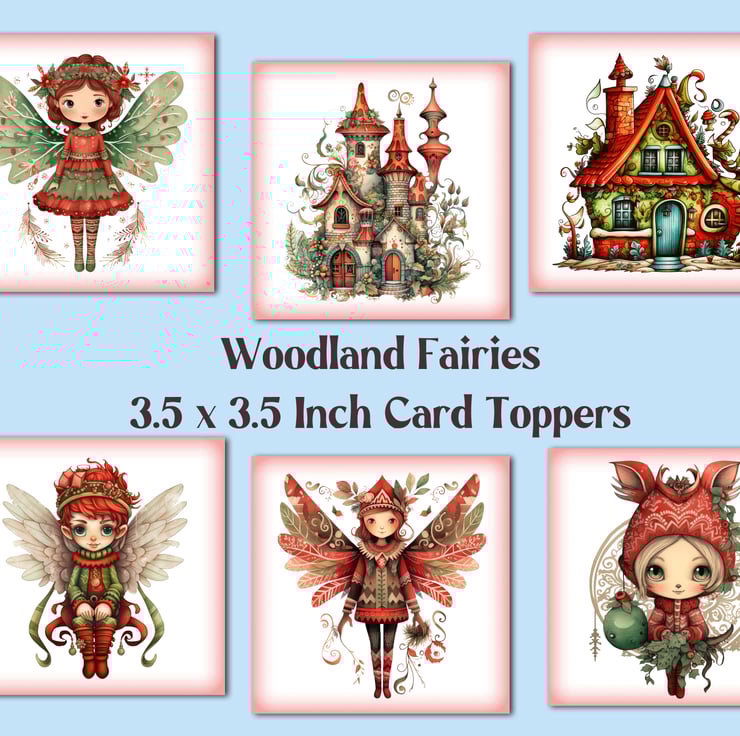 A set of six 3.5 inch square card toppers - Christmas fairies