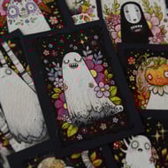 i created a ghost a day for the entire month of october, 2024! this little one was the very first, mister day one - sweet and simple (very simple. look at those vacant eyes!)... surrounded by autumnal blossoms and blooms.