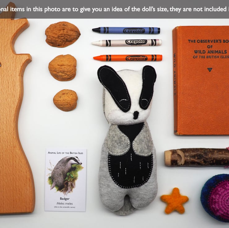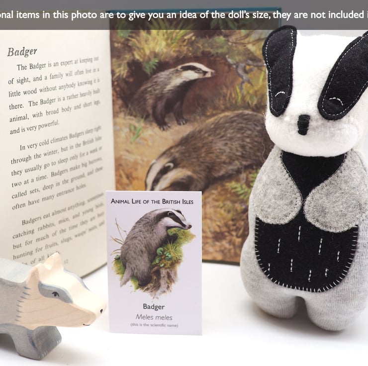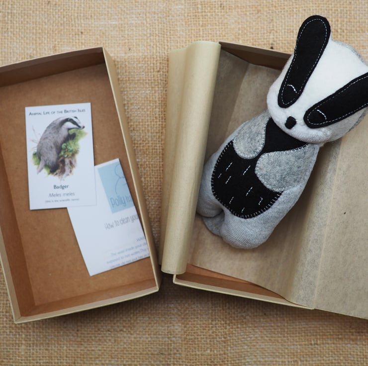 Brock the badger comes in a beautiful gift box made from recycled materials, wrapped in a tissue paper. He will come with care and washing instructions and all my dolls come with a doll's hospital pass - just contact me when he needs some tlc!