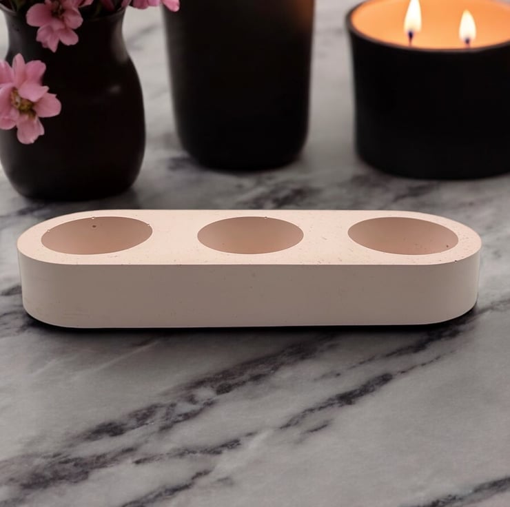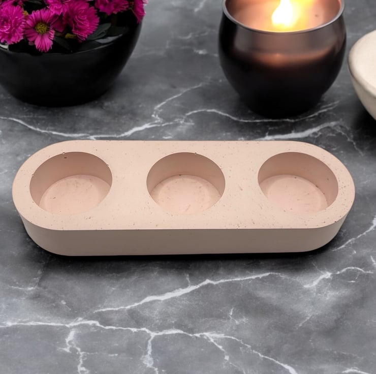 Speckled Light Pink Triple Tealight Holder - Unique Trio Candle Holder