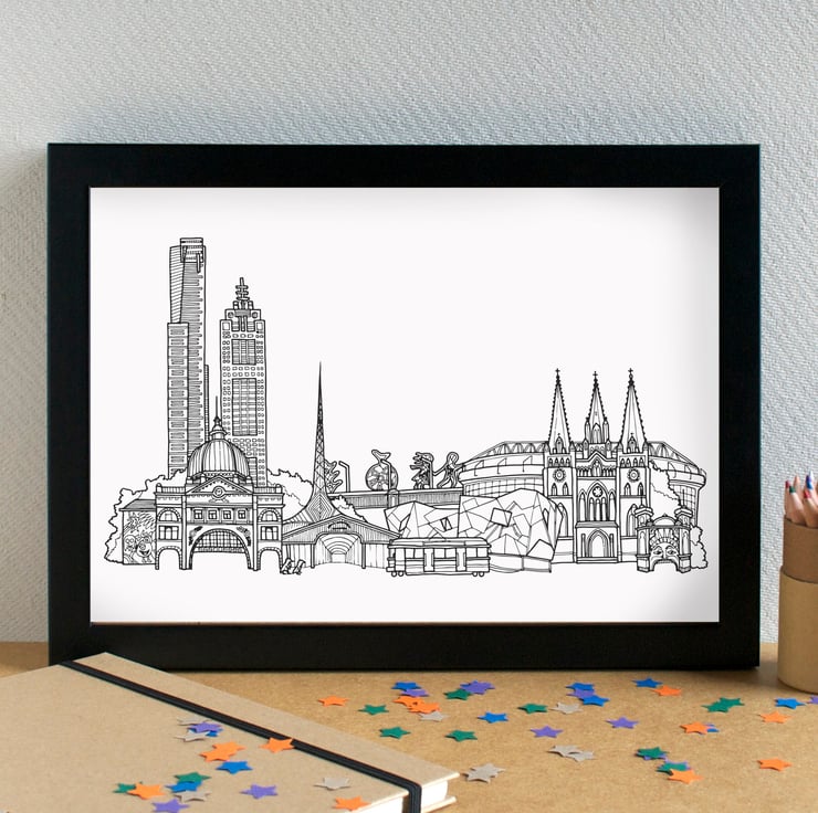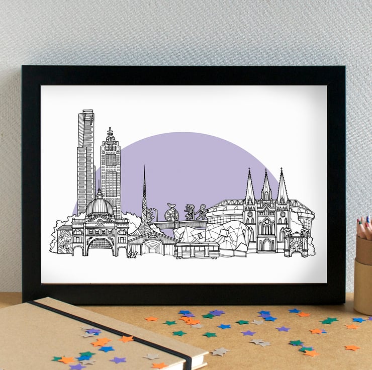 A stunning art print of my skyline illustration of the most famous landmarks in Melbourne.