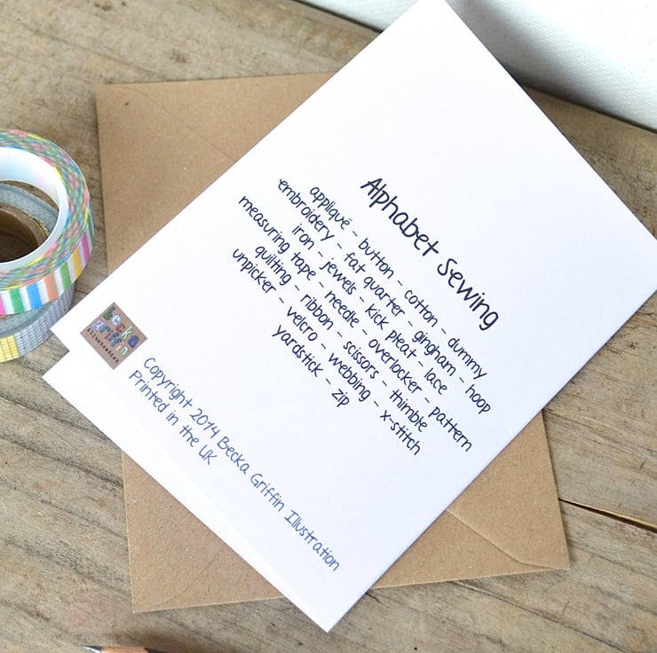 Full list on the reverse; blank inside. Printed from my original illustration onto a 100% recycled white card.