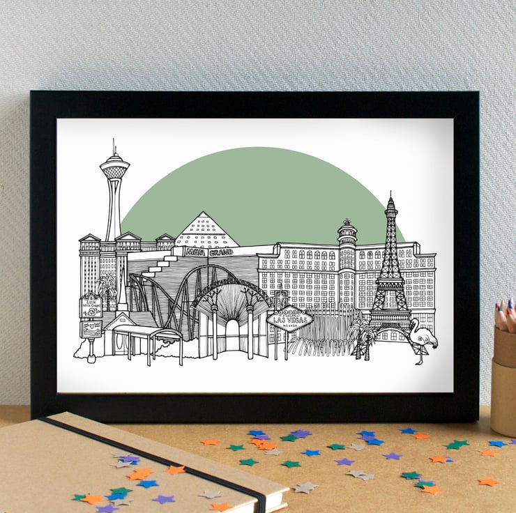 A pretty art print of my skyline illustration of the most famous landmarks in fabulous Las Vegas.