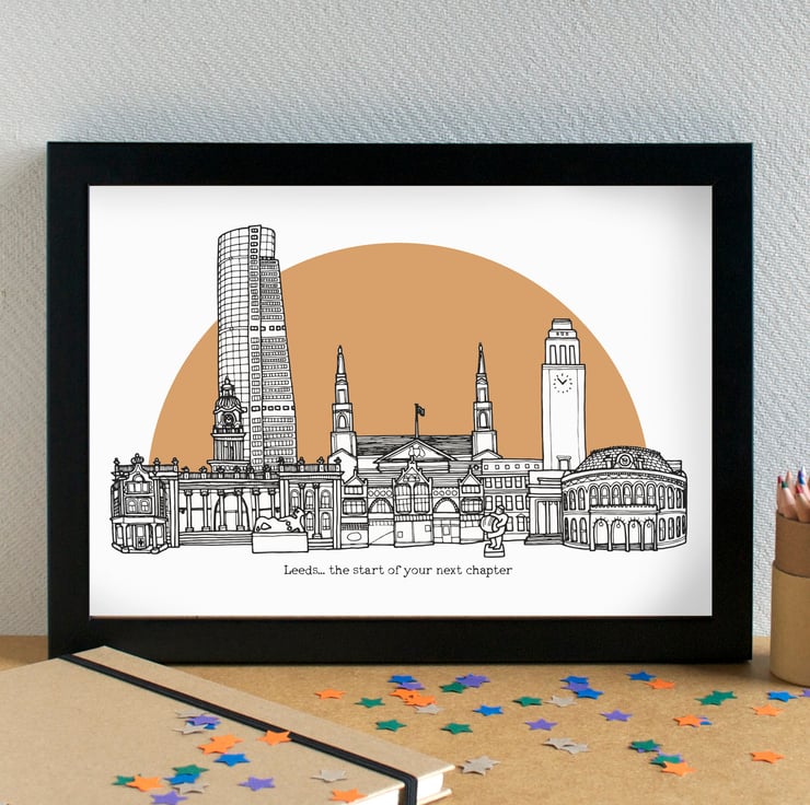 A gorgeous print of my illustration of the most famous contemporary landmarks in Leeds.