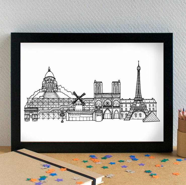A stunning art print of my skyline illustration of the most famous landmarks in beautiful Paris.