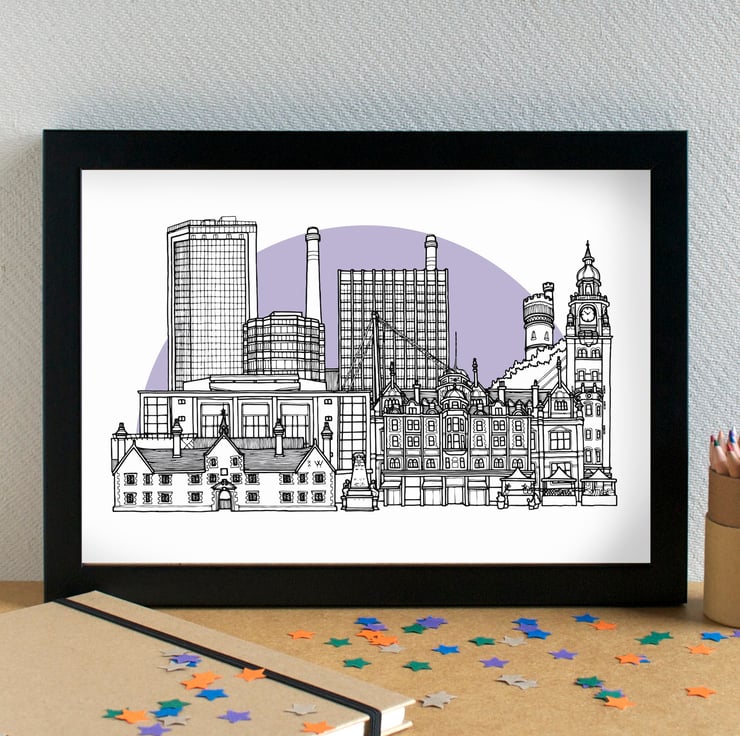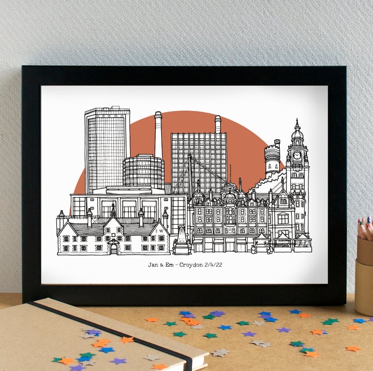 An intricate print of my hand drawn illustration of the most famous landmarks in Croydon, Surrey.